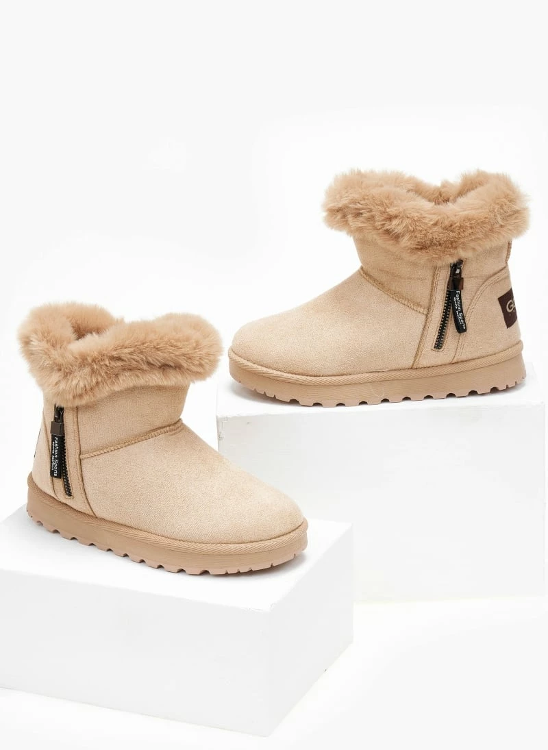 Μποτάκια χιονιού suede . Έχουν επένδυση από συνθετική γούνα. Διακοσμητικό φερμουάρ στην εξωτερική τους πλευρά.