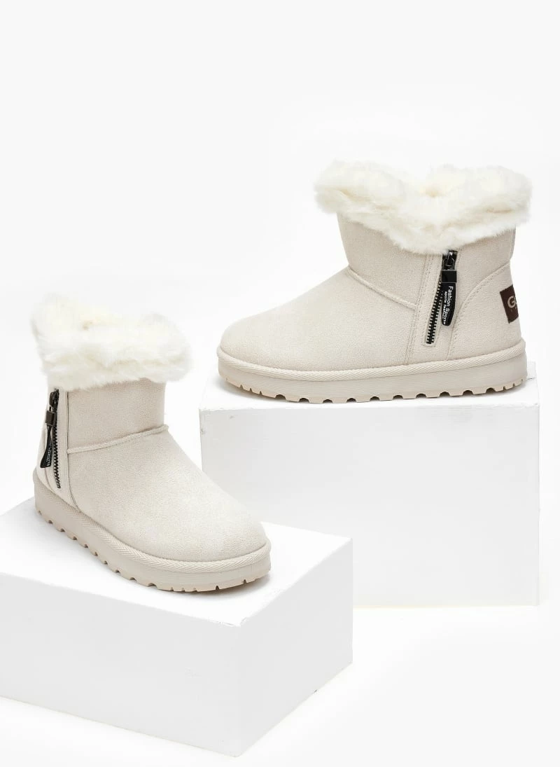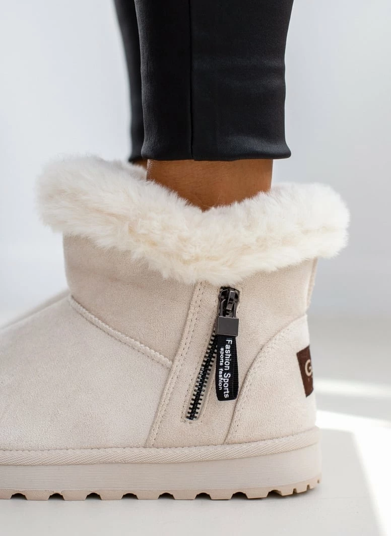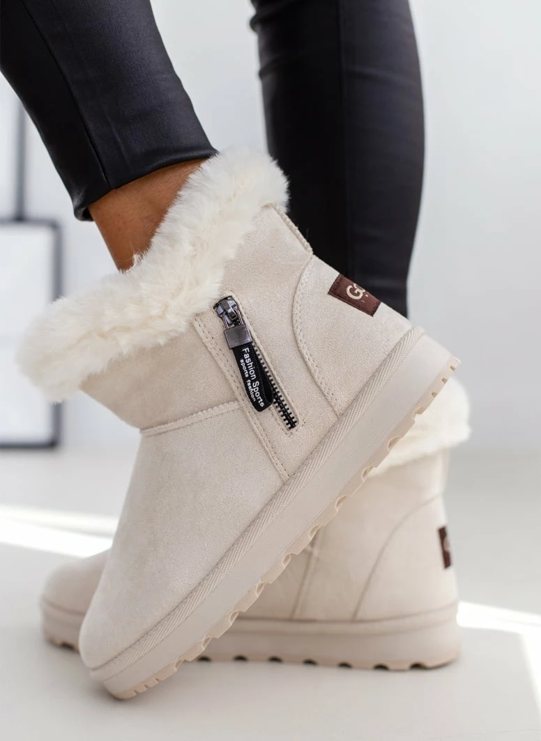 Μποτάκια χιονιού suede . Έχουν επένδυση από συνθετική γούνα. Διακοσμητικό φερμουάρ στην εξωτερική τους πλευρά.