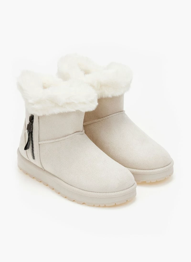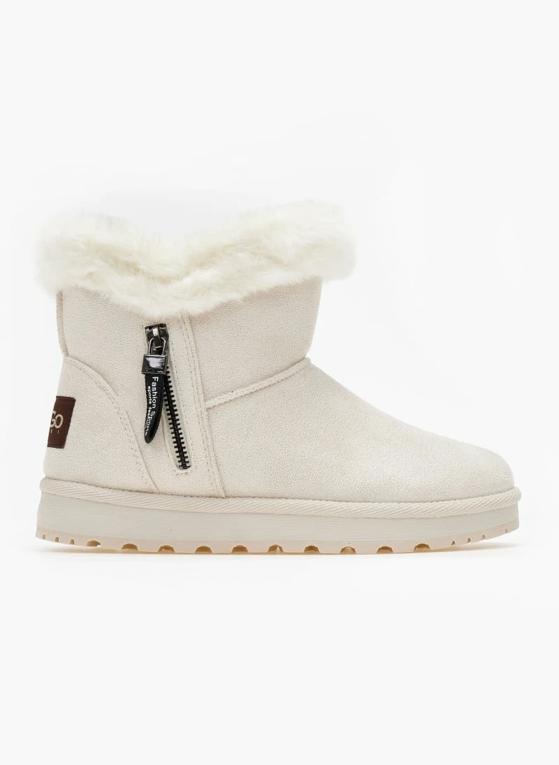 Νέος 🔥 The Fashion Project Μποτάκια με γούνα και φερμουάρ – Μπεζ 🤩