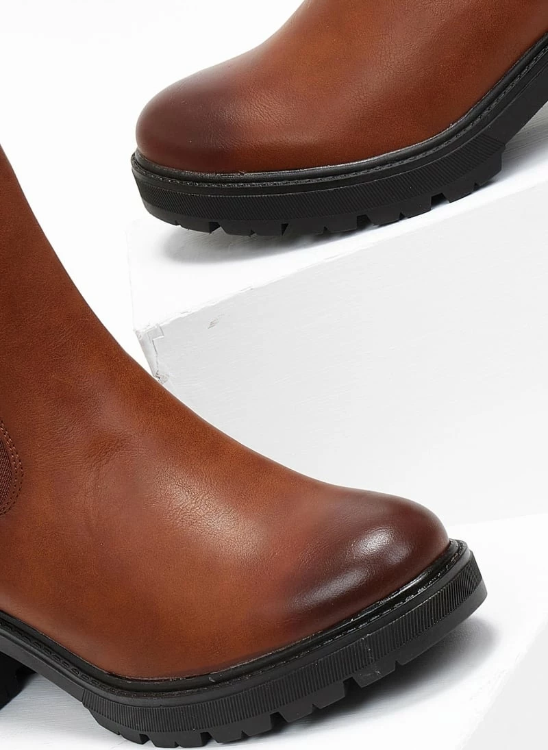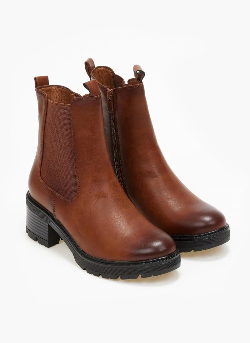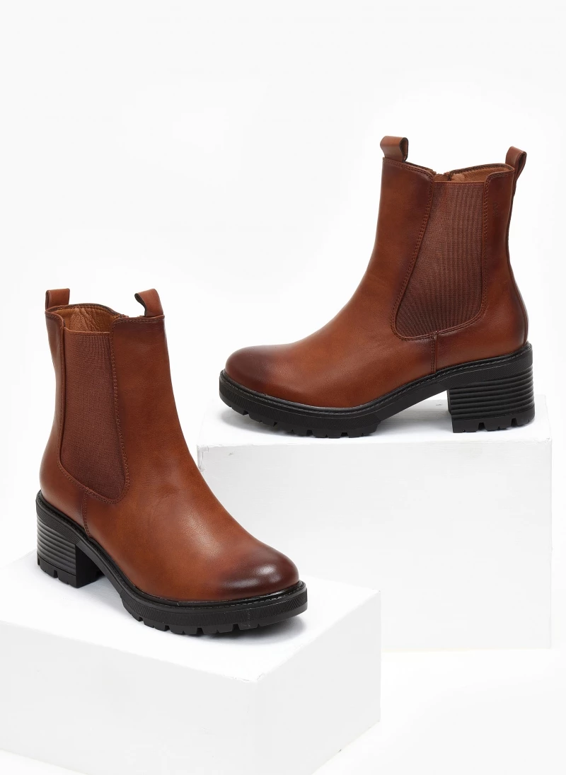 Μποτάκια με τρακτερωτή σόλα και χαμηλό τακούνι. Έχουν λάστιχο στην εξωτερική τους πλευρά. Θηλάκια στο τελείωμα.