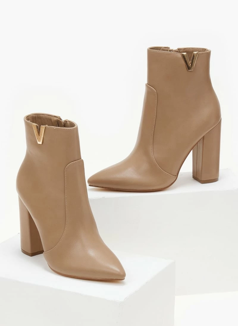Νέος 🛒 The Fashion Project Μποτάκια με μεταλλικό V Cut – Πούρο 🛒