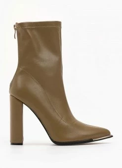 Το φθηνότερο 😍 The Fashion Project Μποτάκια μυτερά με φερμουάρ πίσω – Λαδί 🤩