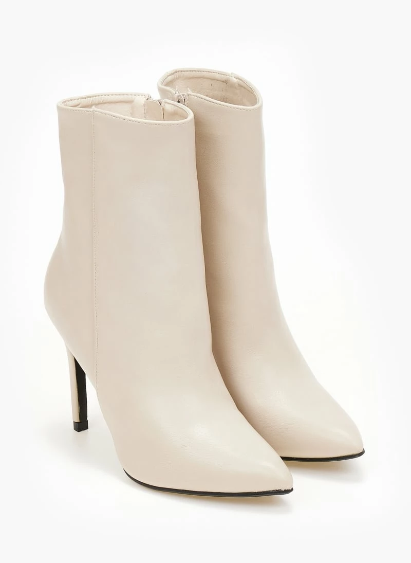 Μποτάκια μυτερά με λεπτό ψηλό τακούνι. Έχουν κάθετη ραφή στο πλάι.