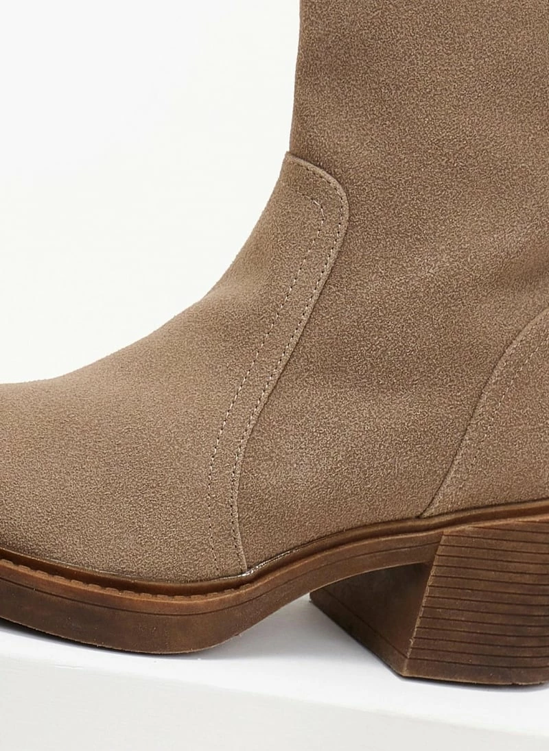 Best Pirce ✔️ The Fashion Project Μποτάκια Suede με εξωτερικές ραφές – Τάουπε 😀