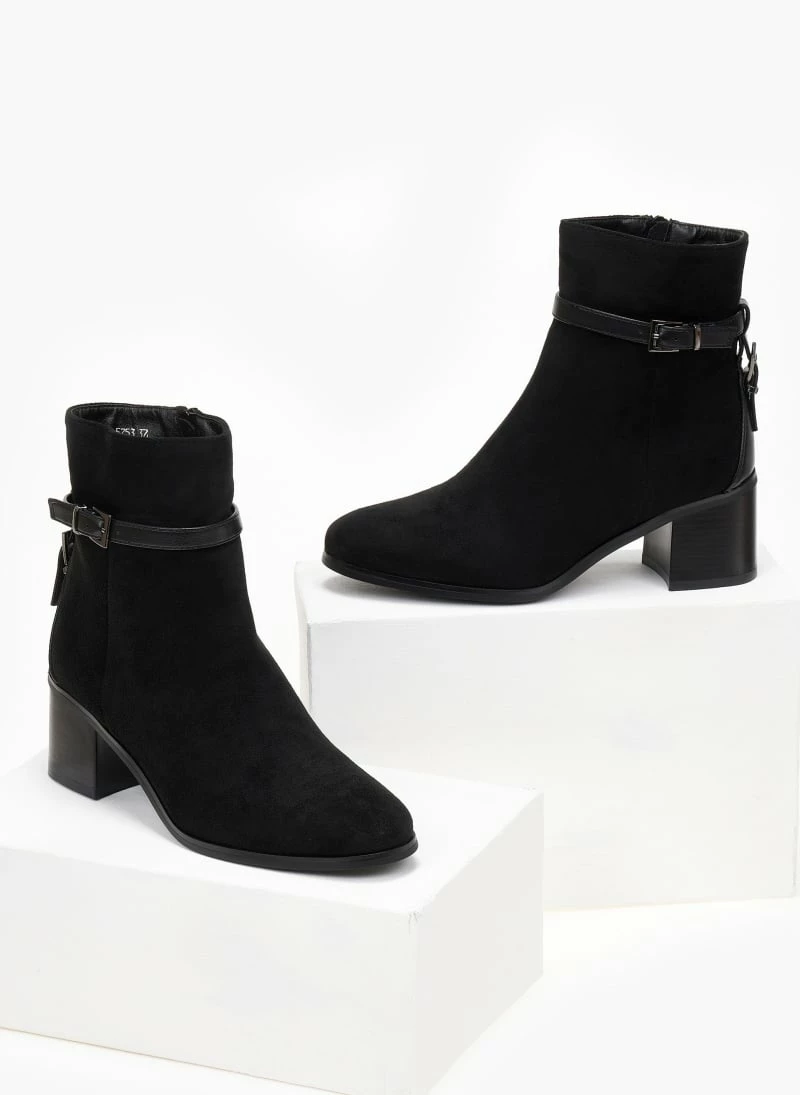 Φτηνός 🎉 The Fashion Project Μποτάκια Suede με λεπτό ζωνάκι – Μαύρο 🧨