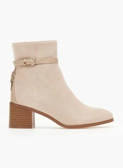 Τοπ 10 🔔 The Fashion Project Μποτάκια Suede με λεπτό ζωνάκι – Μπεζ 😀