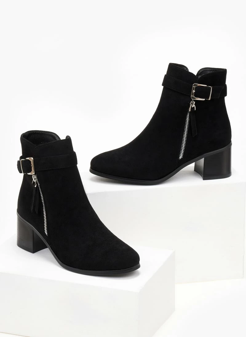 Κουπόνι ❤️ The Fashion Project Μποτάκια Suede με μεταλλικό φερμουάρ – Μαύρο ✨