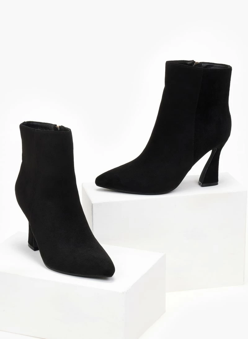 Καλύτερη πώληση 👏 The Fashion Project Μποτάκια Suede με τακούνι καμπάνα – Μαύρο 🔔