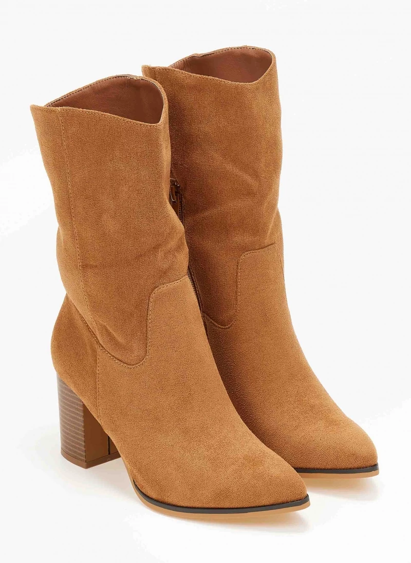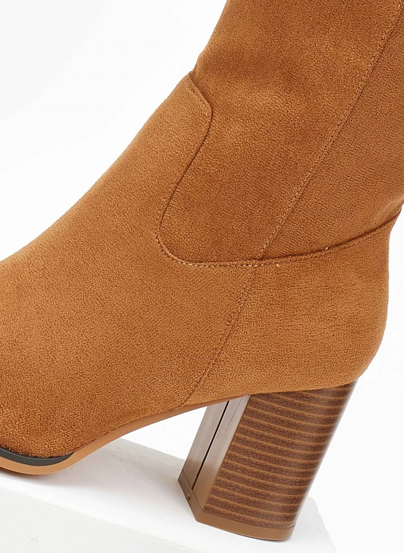 ΧΟΝΔΡΙΚΟ ΕΜΠΟΡΙΟ ✔️ The Fashion Project Μποτάκια Suede με ξύλινο τακούνι – Κάμελ 🎉