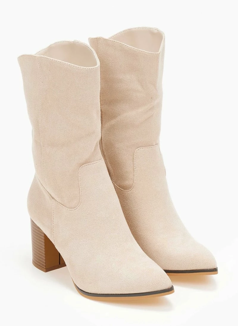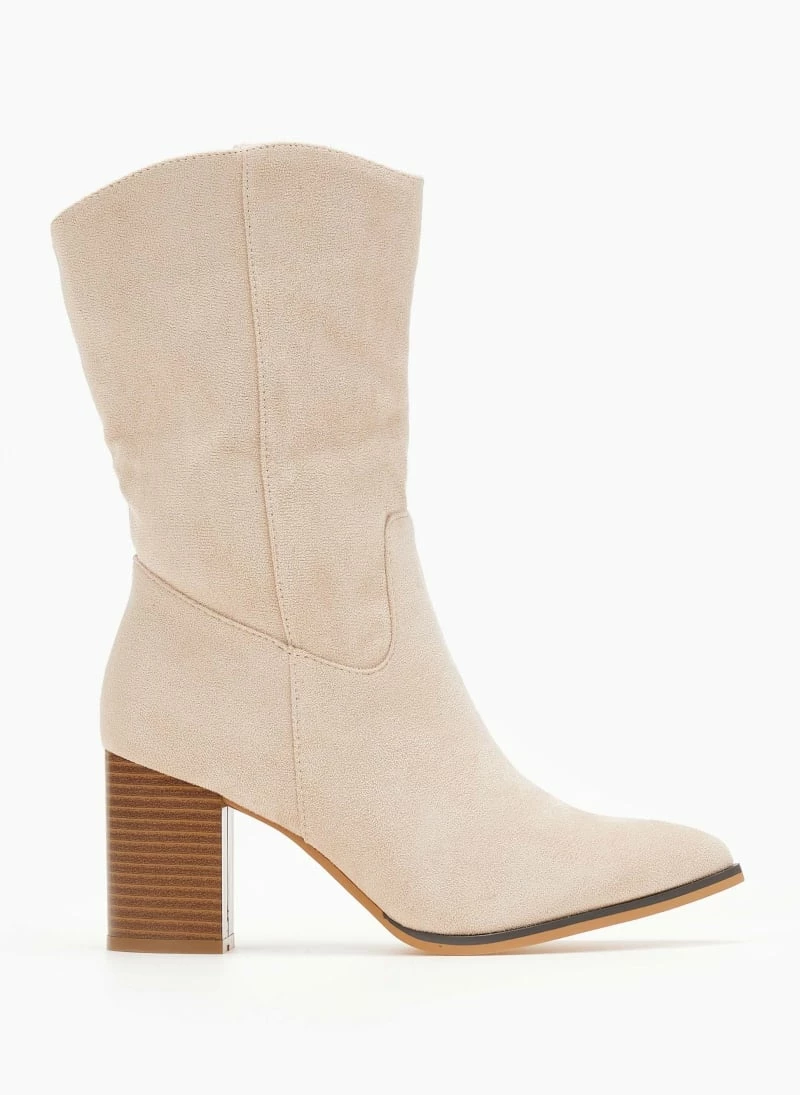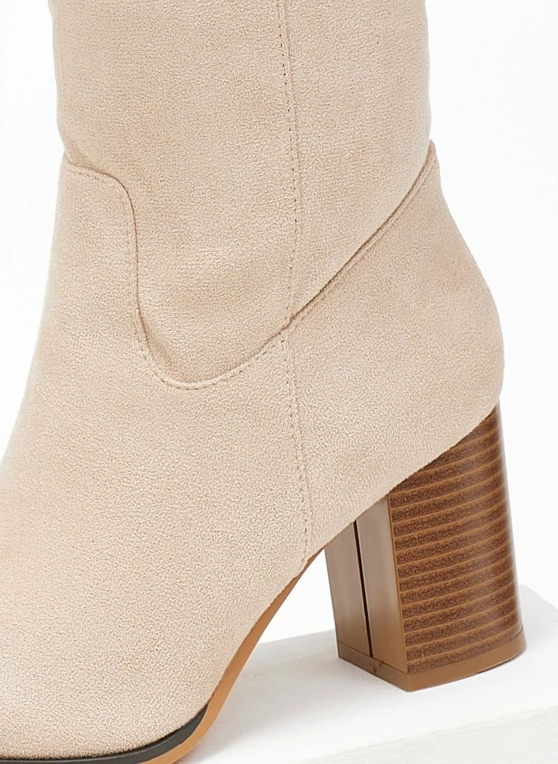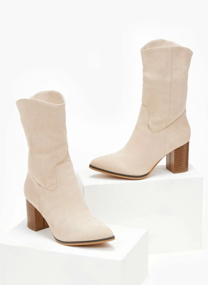 Συμφωνίες ⌛ The Fashion Project Μποτάκια Suede με ξύλινο τακούνι – Μπεζ ✨